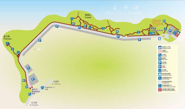 観察は風景区の環状遊歩道から。または高さ17メートルの単面山に登れば、石梯坪の地質景観を見下ろすことができ、太平洋の広大な風景を目に納めることもできます。