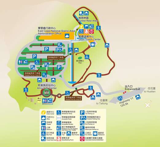 戶外廣大的草原,錯落有致地擺放每年大地藝術節的作品,在綠地與海洋襯托之下,不僅適合在這裡坐著體會台東的悠閒,也可以來這邊野餐,享受東海岸迷人的風景,若是遇上「月光.海音樂會」,夜晚還能夠坐在草地伴著海上的月光,聆聽優美的音樂。