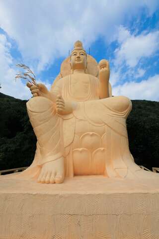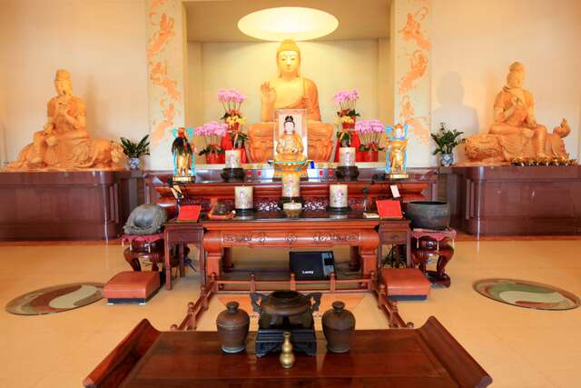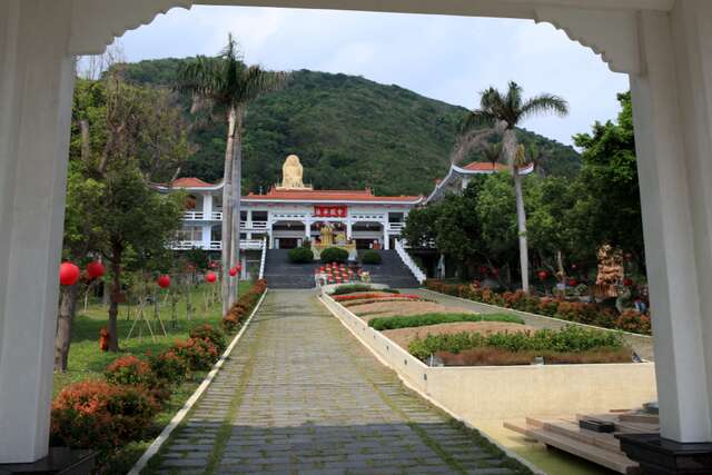 佛寺背倚青山,前臨浩瀚的太平洋,樸實無華的建築風格,加上不時傳來悠揚的梵音,讓人頓時進入祥和清幽的境界;寺後蒼翠的山巒上聳立一尊鵝黃色的觀音塑像,是名雕塑家楊英風的作品,其雍容莊嚴的法相,早已成為和南寺的地墂。