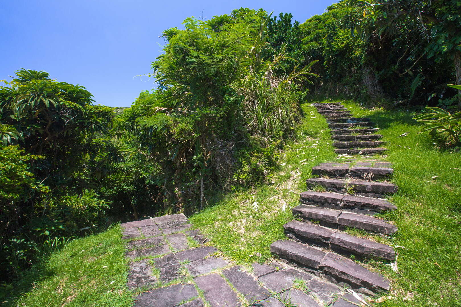 過去綠島沒有環島公路時,過山古道是連接綠島公館村與溫泉村二側的交通要道,如今過山古道是一條生態景觀豐富的森林步道,是體驗綠島山林景致的最佳路線!從綠島機場旁的「登山步道」往上走,中途可看見「過山古道」入口,可走到另一邊的出口-公館溫泉村,沿途為山路,需要較好的體力邁步前進。沿著石階步行,走到步道終點時,在涼亭眺望綠島環島公路與海岬旁的孔子岩,綠島的美景在此刻一覽無遺。