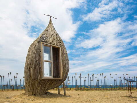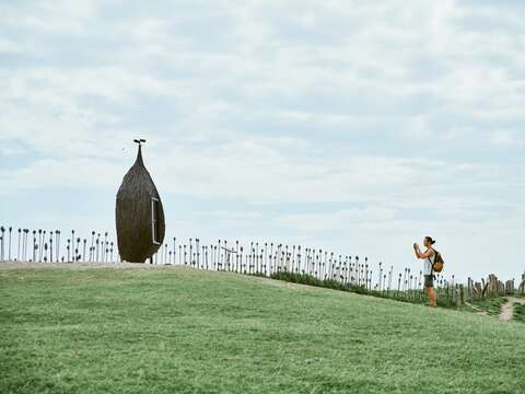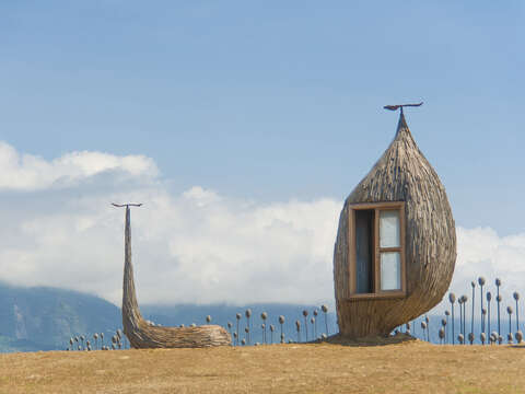 而對來自屏東馬兒部落的排灣族藝術家達比烏蘭‧古勒勒而言,東海岸獨特的、海納百川的自由多元和創作氣息深深吸引著他,此次的創作『旅人的眼睛』,眺望都蘭山與都蘭灣相依相擁的絕美景致。他希望透過這對回收鋼筋雕塑的旅人之眼,讓駐足在這片山海之間的觀者,除了看見波瀾壯闊的美景之外,還能重新返視自己與自然的依存關係。
