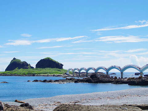 傳說八仙中的呂洞賓、李鐵拐、何仙姑曾登臨此島,因而得名「三仙台」。島上除了仙劍峽、合歡洞等與三仙台故事有關的天然奇景外,且散佈著海蝕溝、壺穴、海蝕柱、海蝕凹壁等海蝕景觀,盡覽大自然的鬼斧神工。1987年完成的八拱跨海步橋,宛如一條巨龍伏臥海上,更是您不可不親臨尋訪的東海岸地標。