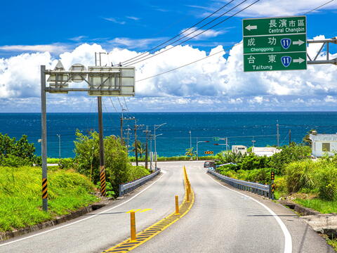 穿越海岸山脈的玉長公路(台30線),全長16公里,一路攀升至海拔400公尺,玉里鎮的田疇在腳下延展,雲霧繚繞間勾勒出縱谷的靈秀山景。穿越2.66公里長的玉長隧道,湛藍的太平洋在眼前豁然開朗,天氣晴朗時還能遠眺三仙台的島嶼剪影。